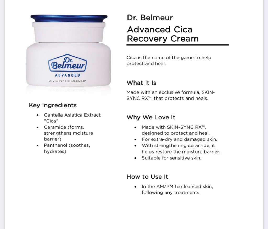 Dr. Belmeur Advanced Cica Recovery Cream is exclusively sold by Avon and can be purchased online from your Avon Representative.