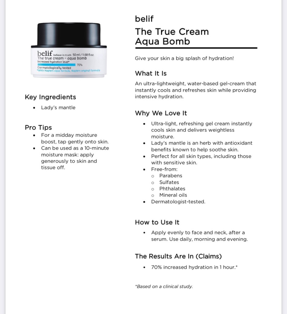 Where can I find or purchase belif The True Cream Aqua Bomb?