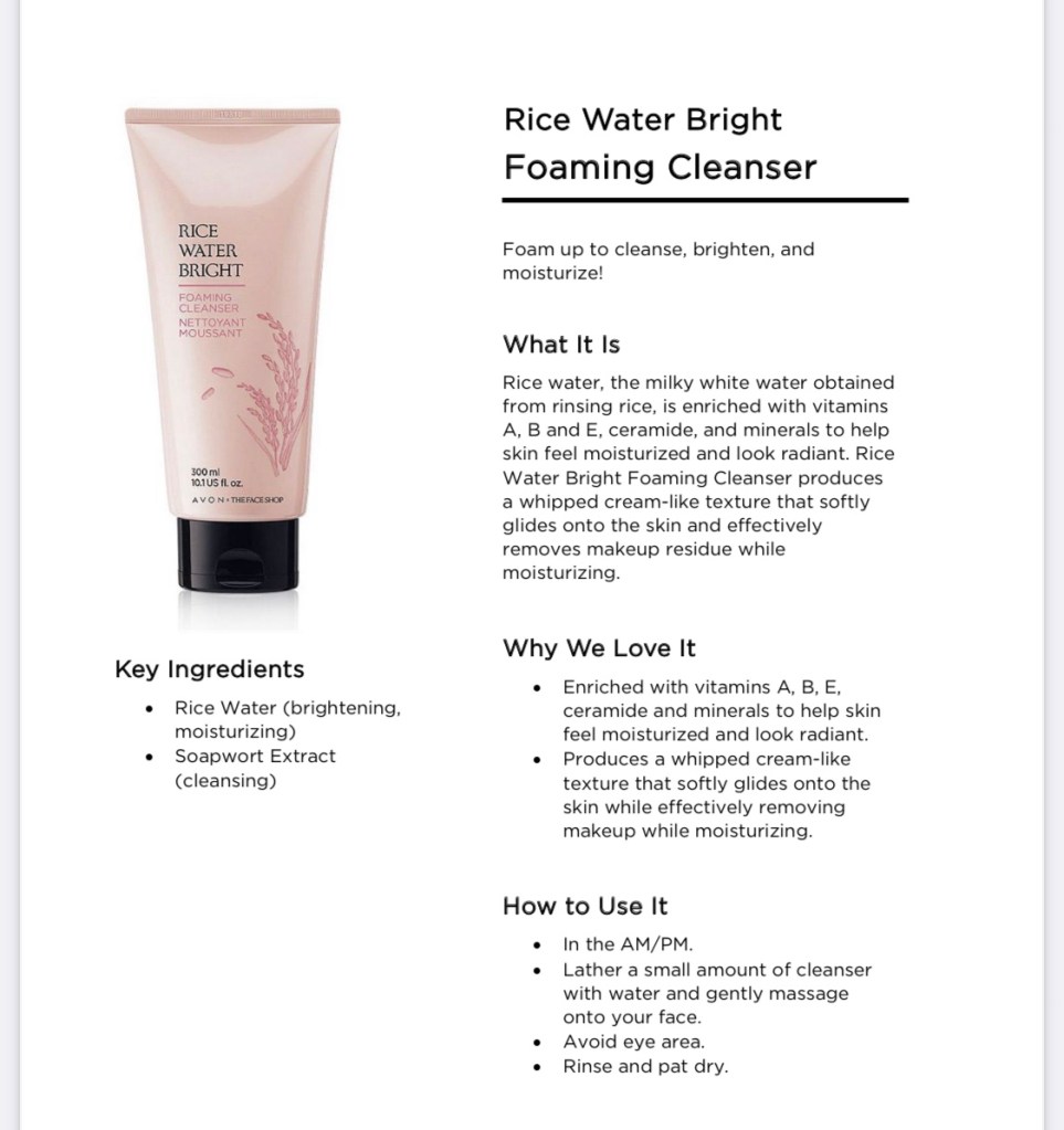 Rice Water Bright Foaming Cleanser is exclusively sold by Avon and can be purchased online from your Avon Representative.