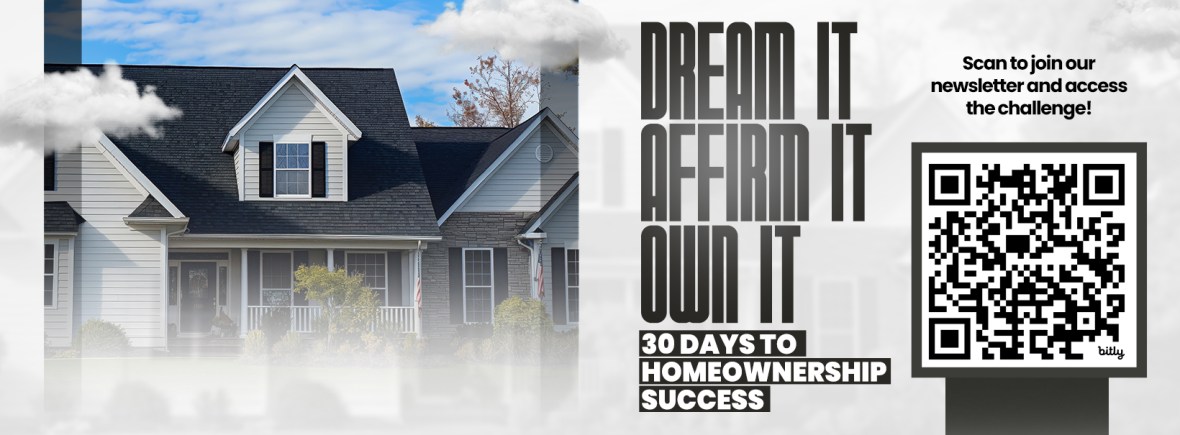 I’m thrilled to introduce Dream It, Affirm It, Own It: 30 Days to Homeownership Success – a transformative challenge designed to help you shift your mindset, stay motivated, and take real steps toward owning your first home.